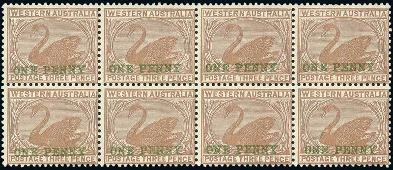 Watermark Crown CA, a block of eight (4x2), unused with large part or full original gum, a few minor gum wrinkles otherwise fine. S.G. 109, £640. Photo