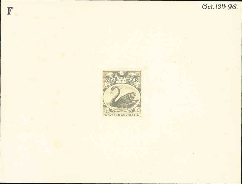 1/- stamp-size photographic essay in an unadopted vertical design, affixed to card (114x86mm.) lettered "F" and dated "Oct 13th 96"; the card with few minor tone spots. BW W3E(2)B, $7500. Photo