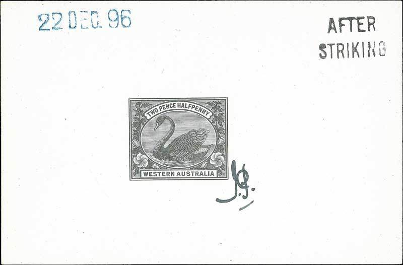 2½d. in black on glazed card (92x60mm.), marked "after striking", dated "22 dec 96" and initialled, fine. BW W1DP(1)C, $3500. Photo
