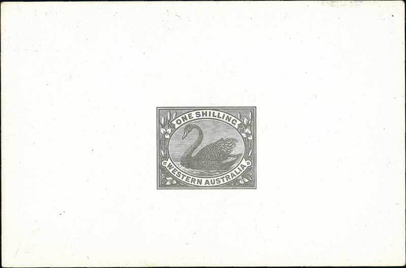1/- Die 1 in black on glazed card (92x60mm.), unmarked, fine. BW W3DP(1), $3500. Photo