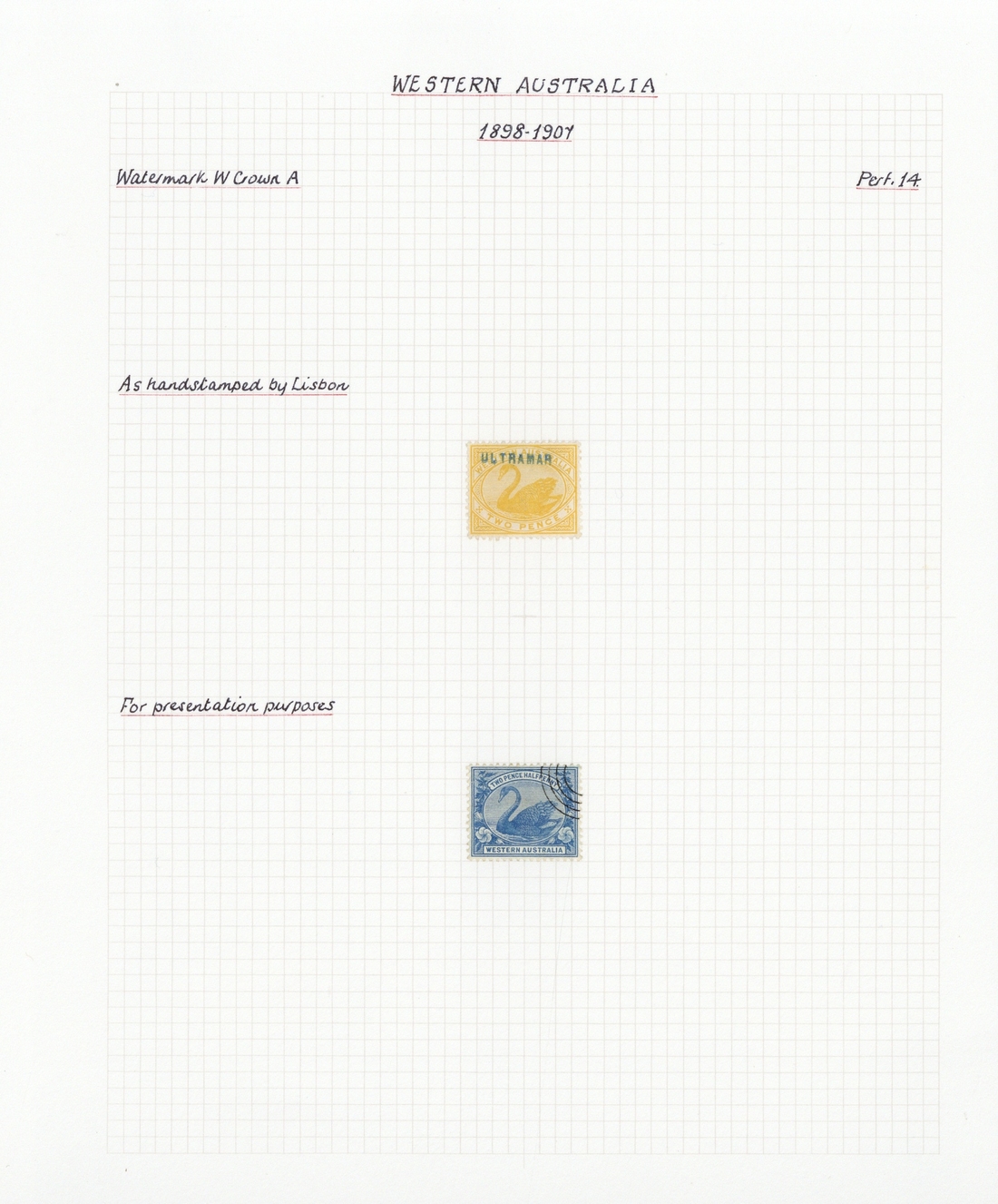 2d. bright yellow handstamped "ultramar" in blue by the Portuguese receiving authority, large part original gum, vertical crease along right edge; also 2½d. with part concentric rings cancel as used for presentation purposes