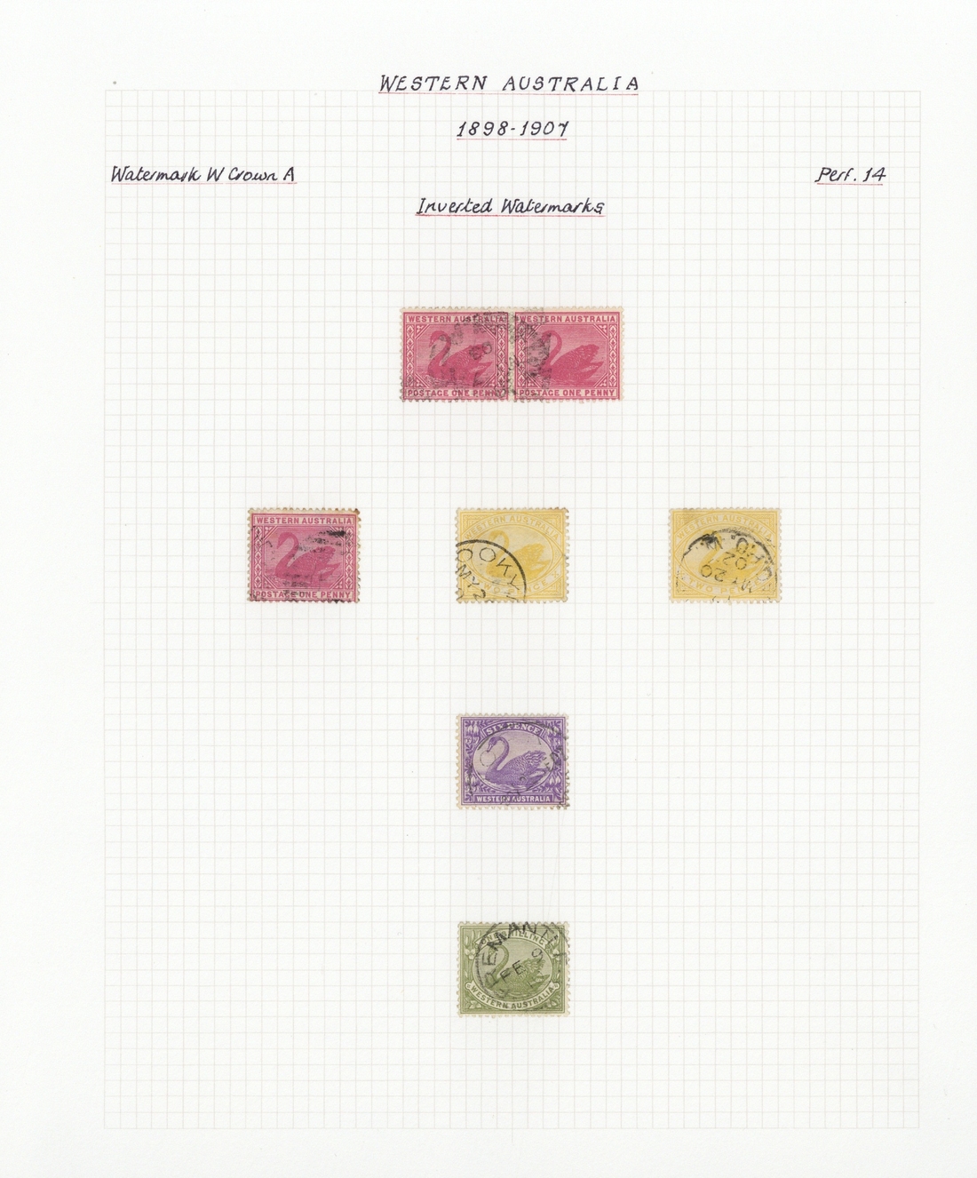 1d. (12 including a pair and single with watermark inverted), 2d. (10 including two with watermark inverted), 2½d. (8), 6d. (7 including one with watermark inverted - rare) and 1/- (7 including one with watermark inverted), all used, most fine. S.G. 112-116, £760+
