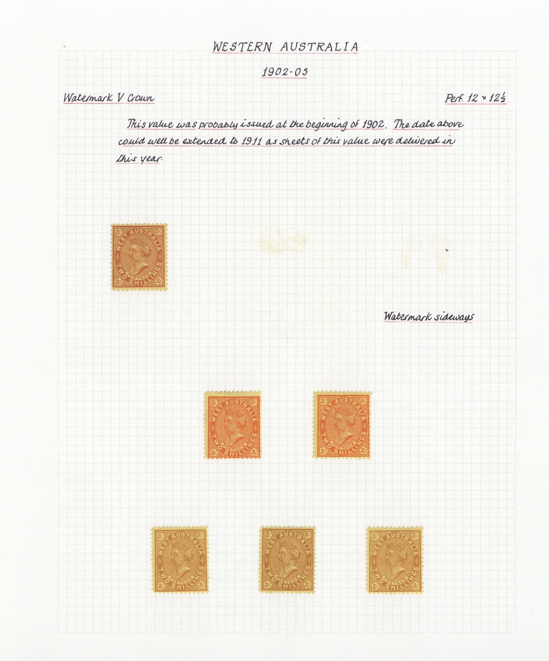 2/- bright red on yellow (2, one with official patch at top), 2/- orange on yellow (2) and 2/- brown-red on yellow (3), fine mint. S.G. 124/124b/124c, £490