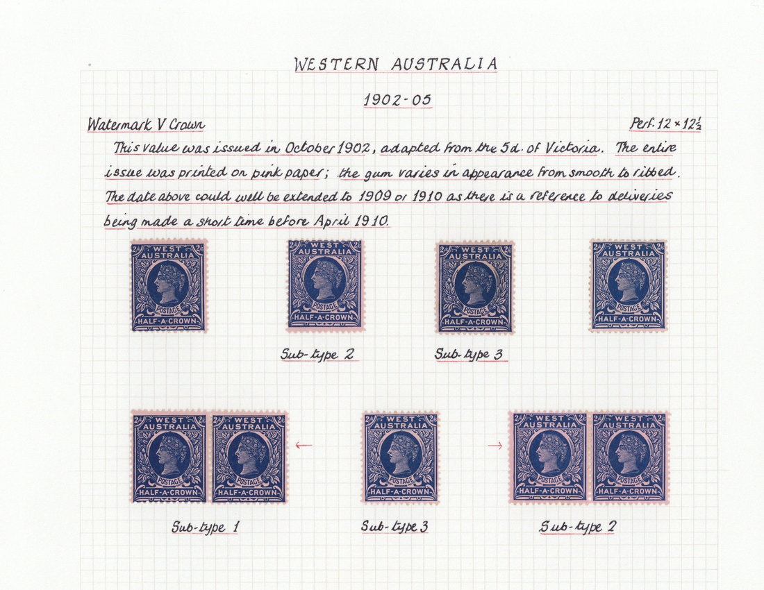 2/6d. deep blue on rose horizontal pairs (2) and singles (5) with three different sub-types annotated, fine mint. S.G. 125, £495