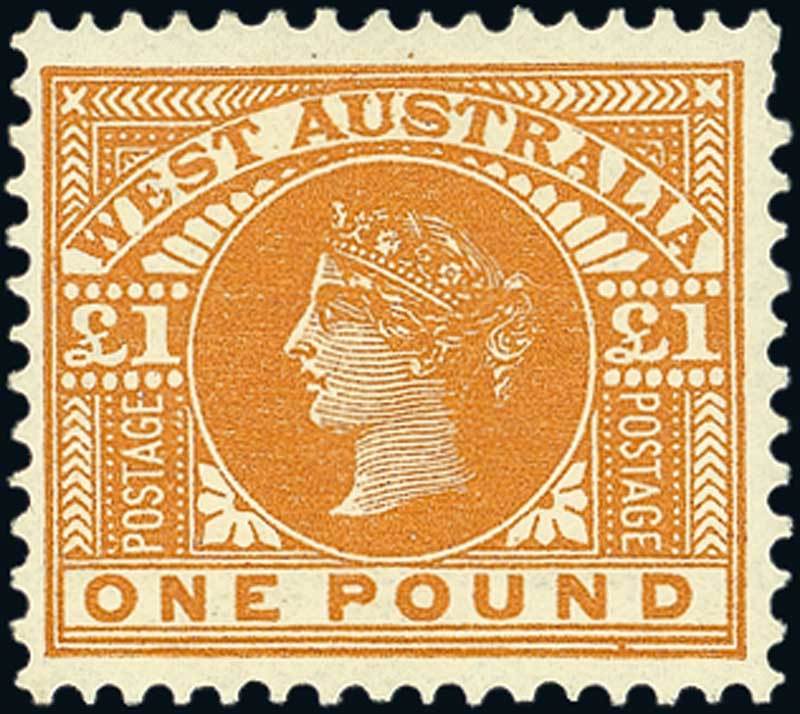 £1 orange-brown, sub-type 1 (coloured flaw on inner frame below "nd" of "pound"), centred to left, one shortish perf at upper right otherwise fine mint. BW W66Ad, $750; S.G. 128, £400. Photo