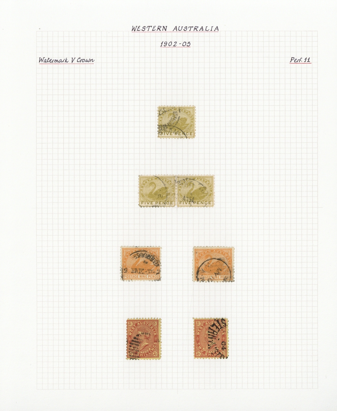 1d. (6 including two pairs, one with watermark sideways and reversed), 2d. (2), 4d. (3), 5d. (3 including a pair), 9d. (2) and 2/- (2), all used, mostly fine. S.G. 129-134, £2200+