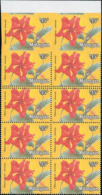 1979 (Apr.) Flowers 15c. marginal block of ten (2x5), the top pair imperforate and perforations double between second and third rows, fresh and fine unmounted mint. ISC K5d; S.G. K5a, unpriced. Photo