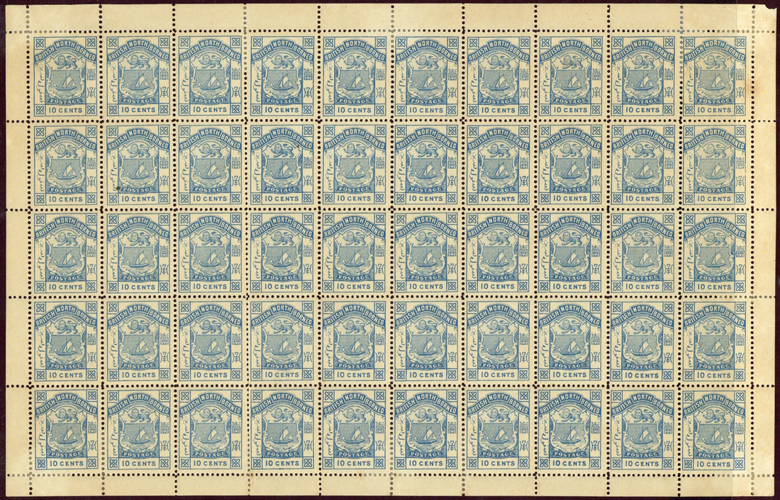 10c. blue Transfer A, a complete mint sheet of fifty, some light overall toning and a few split perfs otherwise fine. S.G. 28, £600+