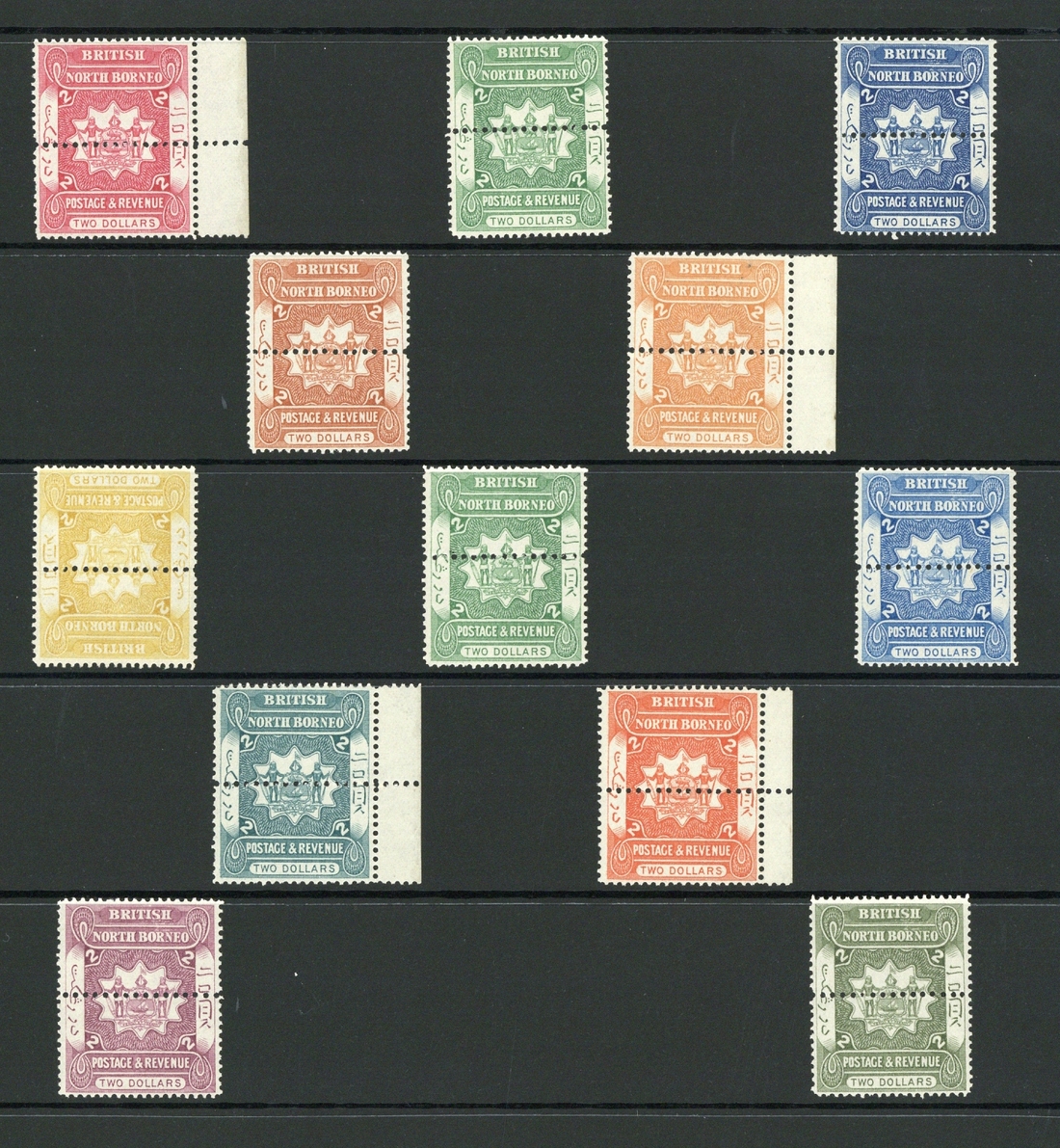 $1 (12) in different colours on gummed paper, each additionally perforated 12 across centre, fresh and fine