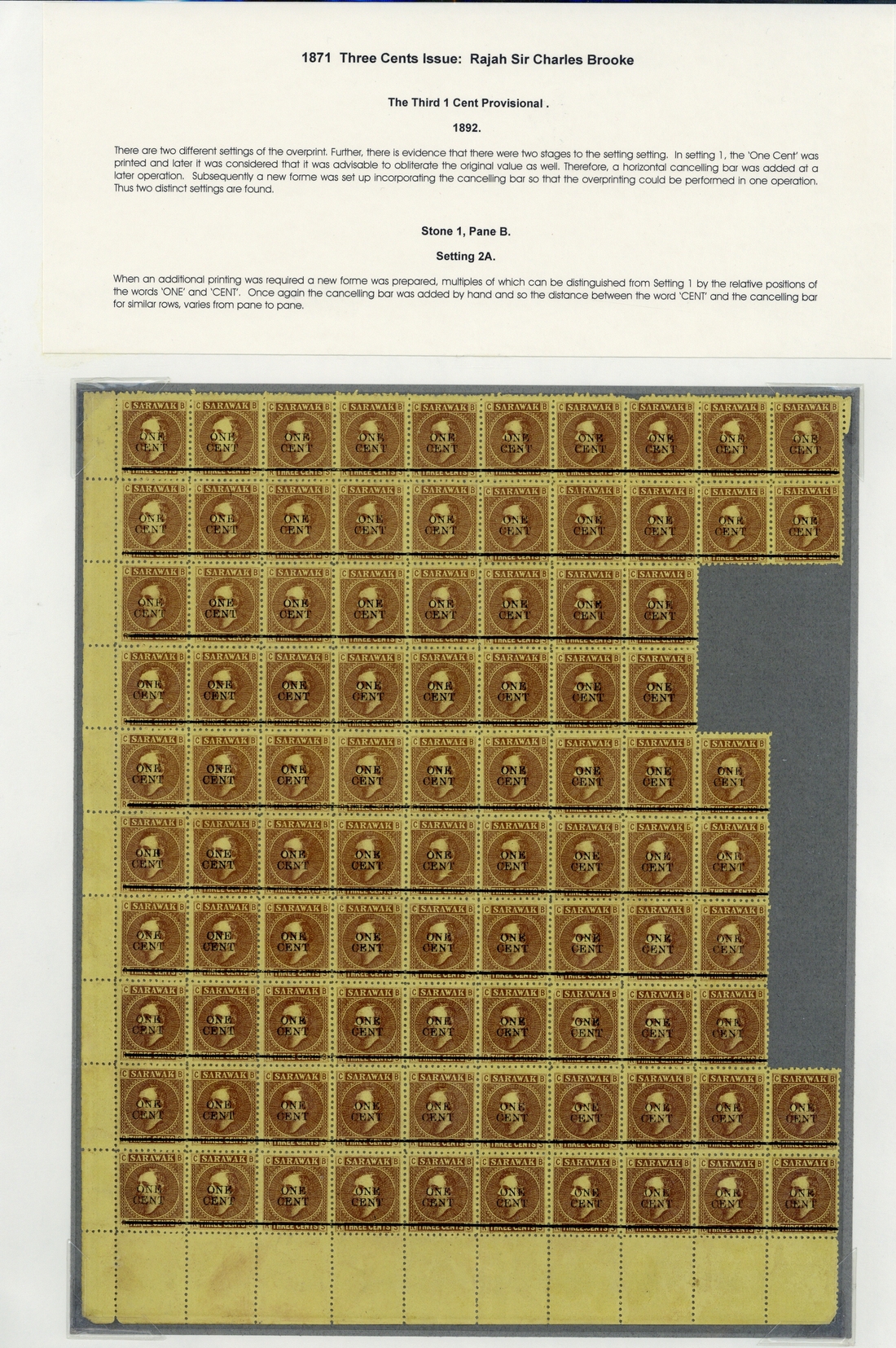 Stone 1, Pane B, Setting 2A complete pane of one hundred less eight stamps from columns 9/10, sheet margins at left and foot, cancelling bar added by hand, fresh unused without gum; [8] defective at top, otherwise fine