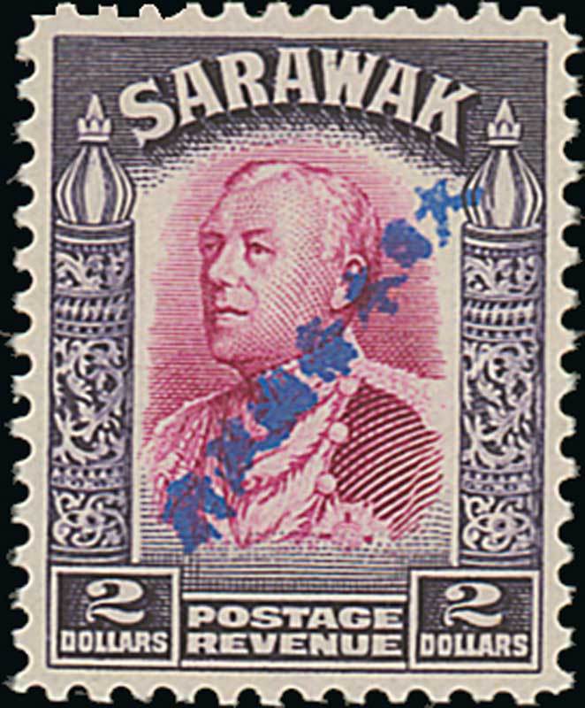 $2 bright purple and violet with diagonal overprint in blue, fine mint. S.G. J22a, £600. Photo