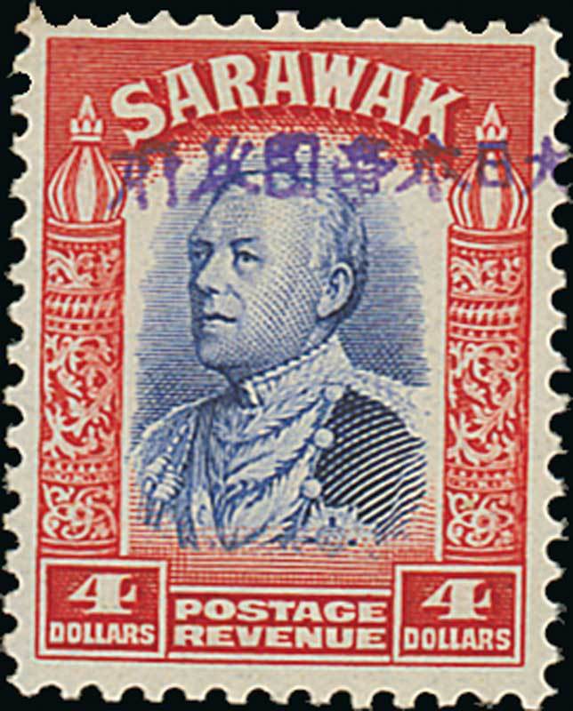 $4 blue and scarlet with violet overprint, fine mint. S.G. J24, £325. Photo