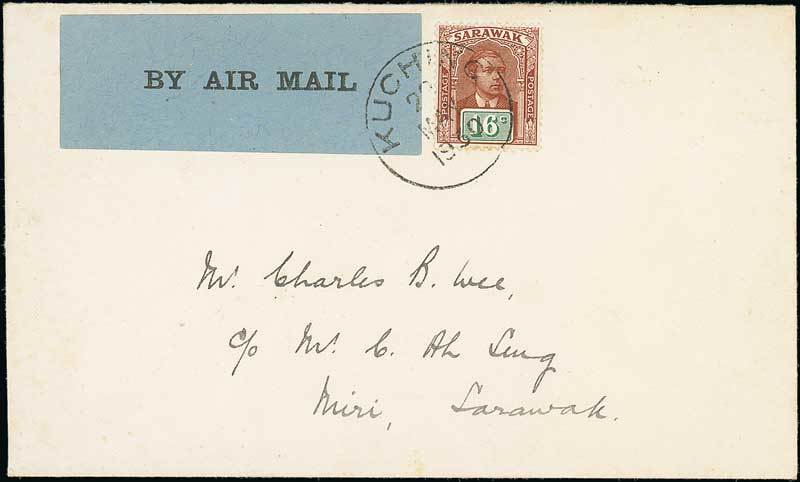 Note: On May 26th 1930 two R.A.F. Southampton Flying-boats, S1419 and S1149, flew from their base at Seletar to Kuching. They were to make a detailed survey of the northern coastline of Borneo to locate suitable sites and seaplane bases for later use. on May 30th both planes flew from Kuching to Miri, calling at Sibu on the way. 26 registered and 110 ordinary letters were carried. An airmail fee of 10 cents per ½ ounce was charged in addition to normal postage.