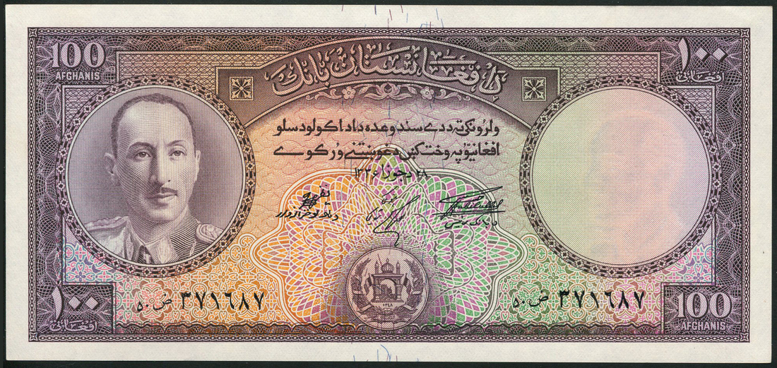 (x) Afghanistan Bank, 2, 10 and 50 afghanis, 1948, 50 and 100 afghanis, 1951, 5, 10, 20 and 100 afghanis, 1957, all with King Muhammed Zahir at left