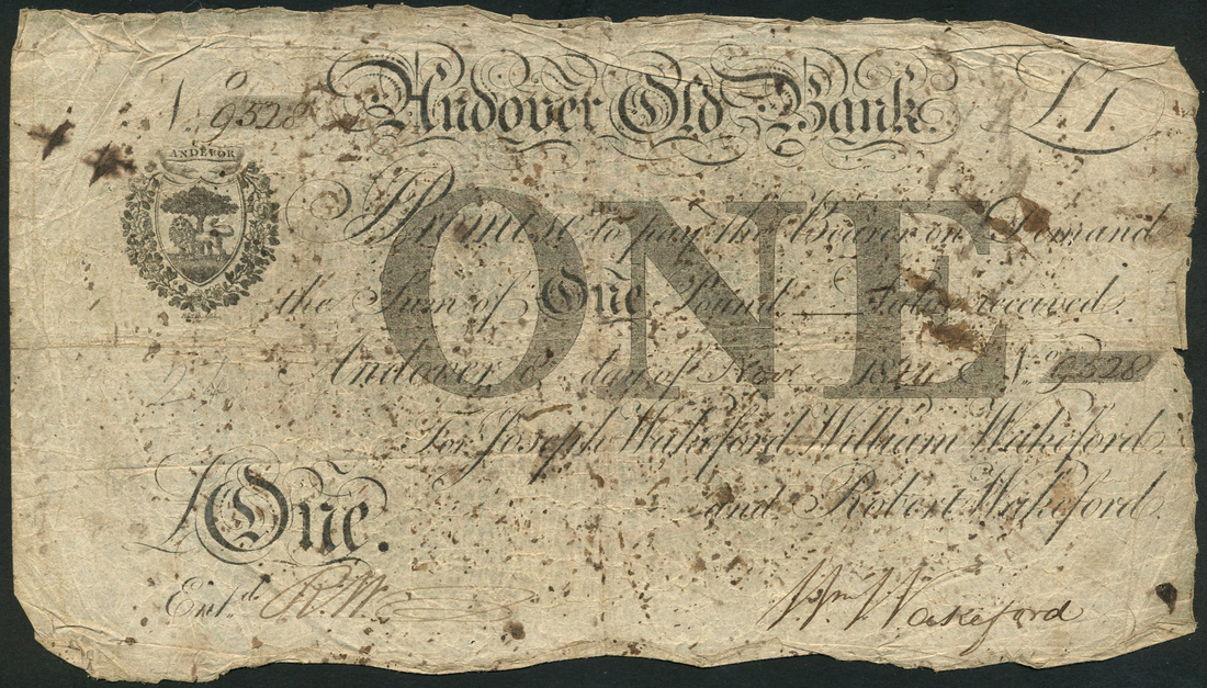 a group of Provincial Banknotes, including the following, Andover Old Bank, Wakeford, £1 (3), 1821, 1824, (2), £5, 1821, Beverley Old Bank, one guinea, 1804, five guineas, 1804, Burlington & Driffield Bank, £5 (2), 1839 and 1880, and Warwick & Warwickshire Bank, £10, 1886