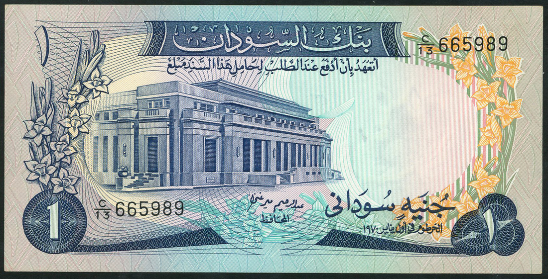 (x) Bank of Sudan, 1 Pound (7), 1970 (2), 1974, 1975, 1977, 1978, 1980, blue and multicoloured, Bank of Sudan building at left, reverse the Kiosk at Naqab