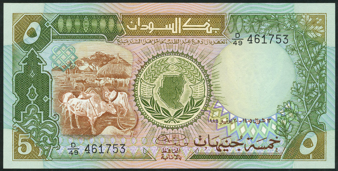 (x) Bank of Sudan, a group of the 1985-91 Issues, all map of Sudan at centre, reverse Bank of Sudan, comprising 25 Piastres (2), 1985, 1990, purple; 50 Piastres, (2) 1985, 1987, red; 1 Pound (2), 1985, 1987, blue-green; 5 Pounds (4), 1985, 1987, 1989, 1990, green; 10 Pounds (4), 1985, 1987, 1989, 1990, brown; 20 Pounds (4), 1985, 1987, 1989, 1990, green; 50 Pounds (3), 1985, 1987, 1989, purple and red; 100 Pounds (2), 1988, 1989, brown, pink and green; 5 Pounds, 1991, orange; 10 Pounds, 1991, grey and pink; 20 Pounds, 1991, purple and green; 50 Pounds, 1991, orange and brown; 100 Pounds (3), 1991 (2), 1992, blue; also 5 Dinars, 1993, brown and orange