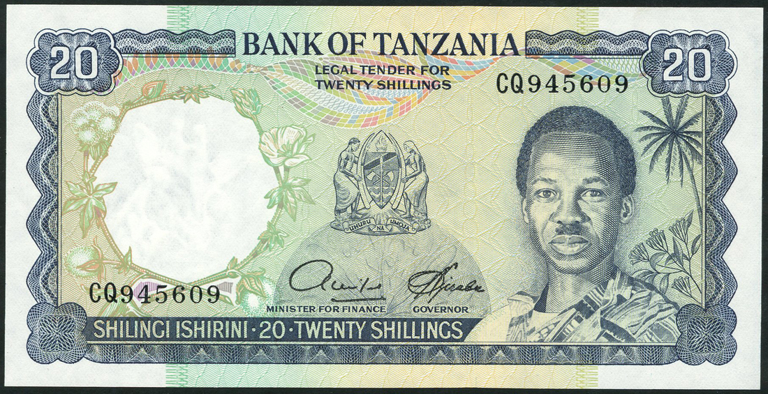 (x) Bank of Tanzania, a group of the ND (1966) Issues, all Julius Nyerere at right, comprising 5 Shillings, brown, reverse Mount Kilimanjaro; 10 Shillings (5), signatures 1, 2, 3, 4,and 5, green, reverse sisal drying; 20 Shillings (5), signatures 1, 2, 3, 4 and 5, blue, reverse mine buildings