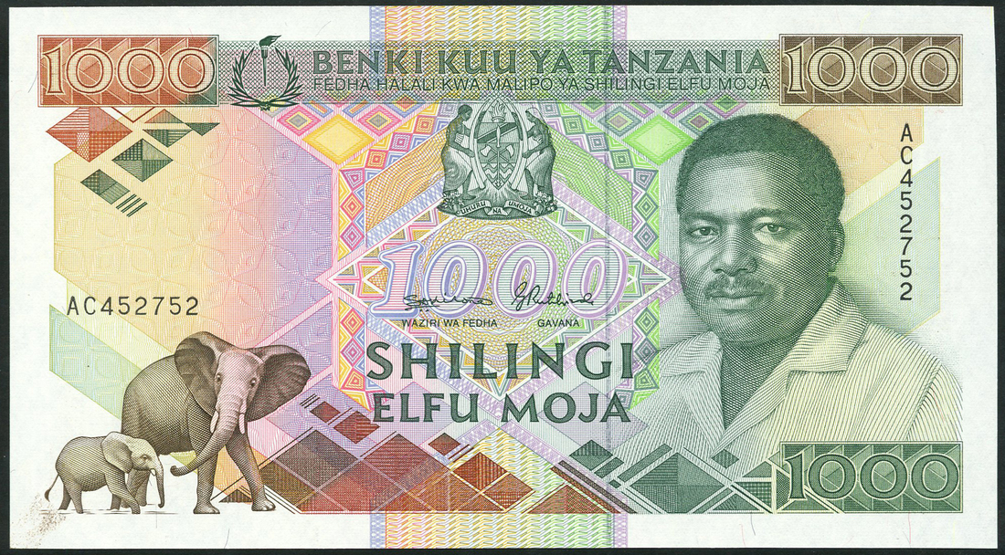 (x) Bank of Tanzania, a group of the ND (1986-90) Issues, all President Mwinyi at right, comprising 20 Shilingi, purple; 50 Shilingi (3), signatures 3, 7B and 8, red; 200 Shilingi (2), signatures 3 and 8, black; 500 Shilingi (3), signatures 3, 7 and 8, dark blue; 1000 Shilingi, green and brown; also a group of the reduced size ND (1993-95) Issues comprising 50 Shilingi, orange; 200 Shilingi (2), signatures 9 and 11, black; 500 Shilingi (3), signatures 9, 10 and 11, purple; 1000 Shilingi (3), signatures 9, 10 and 11, dark green; 5000 Shilingi, brown and 10,000 Shilingi, black and rose