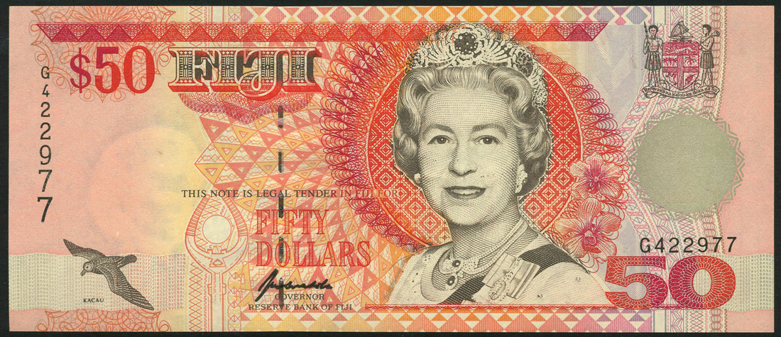 Reserve Bank of Fiji, a group of notes comprising, $2 (3), ND (1996), $5, ND (1995), $10, ND (1996), $20 (2), ND (1996), $50, ND (1996), all vibrant and colourful, portrait Queen Elizabeth II at right, various birds low left, coat of arms top right