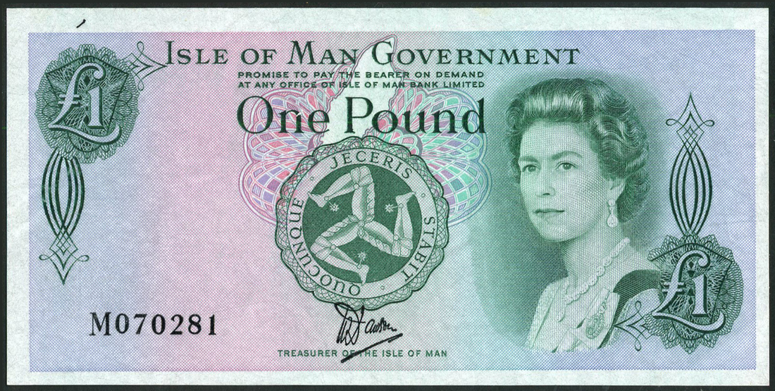 Isle of Man Government, a group of £1, ND (1983), serial number M070279-81, M077661-3, Dawson signature variety, green on multicolour, portrait of Queen Elizabeth II at right, triskeles at centre, reverse St. John's Church on Tynwald Hill,