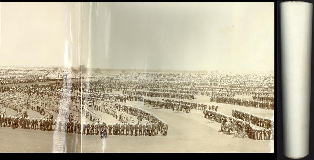 Photographs: A panorama of the coronation durbar, awaiting the arrival of the King and Queen, consisting of five 10 x 7½ inch prints joined together; in a cardboard roll, some damage, mostly confined to the edges.