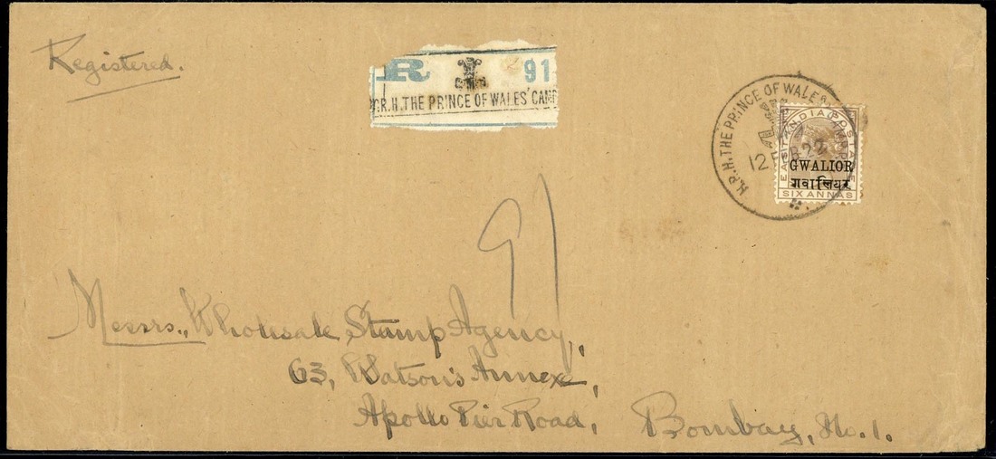 An accumulation of covers and cards with an assortment of covers bearing the special Camp postmarks (79) addressed to Bombay and with varying dates from the different locations, plus registered covers (7) including from Gwalior (2) and one sent by the Prince's secretary to Gangtok; a very interesting selection of real photo postcards (29) including a group from Secunduabad. Condition is a little mixed on places, still a very interesting lot