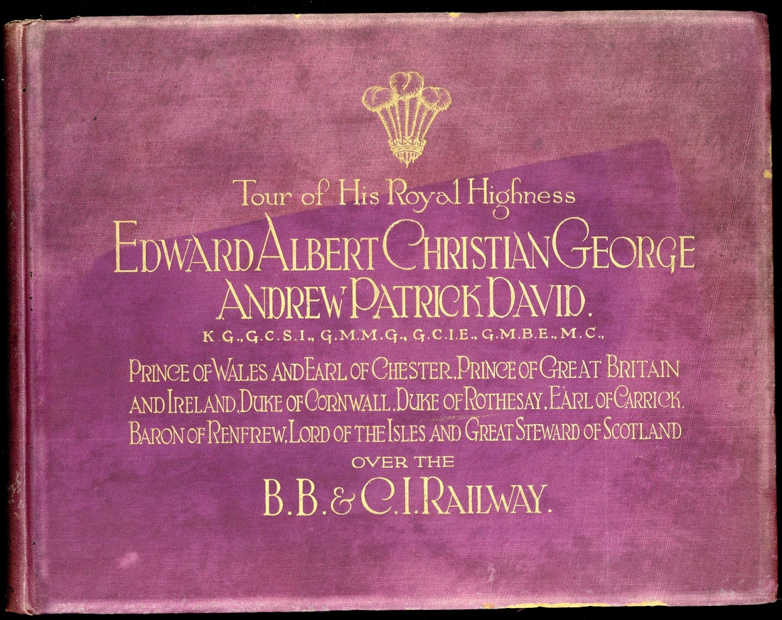 Literature: Tour of His Royal Highness ... over the B.B. & C.I. Railway, 1922; two cloth and gilt covered books of photographs; the first, 11 x 8¾ inches, covers the trip from Bombay to Lucknow, the second, 9 x 6¼ inches, from Khandwa to Ujjain; contains sixteen photographs. Covers a little stained and rubbed. (2)