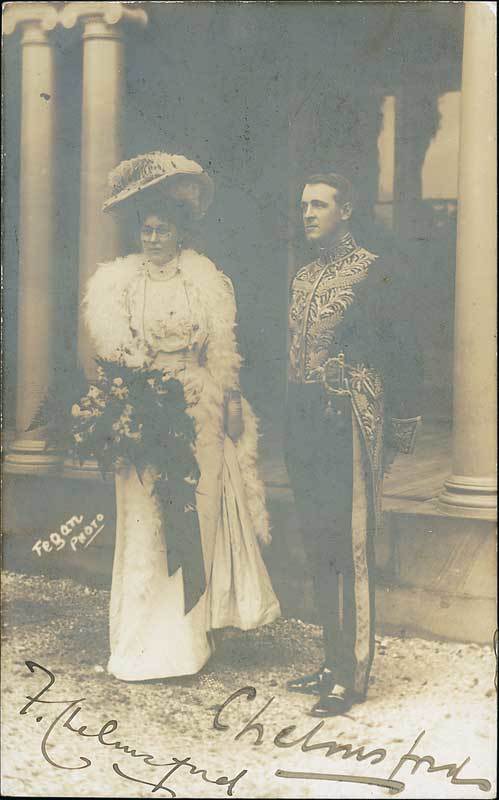 Lord Chelmsford (1916-21): Real photo card of Lord and Lady Chelmsford, he is in his viceroy's uniform; signed at foot "Chelmsford" and "F. Chelmsford". Photo
