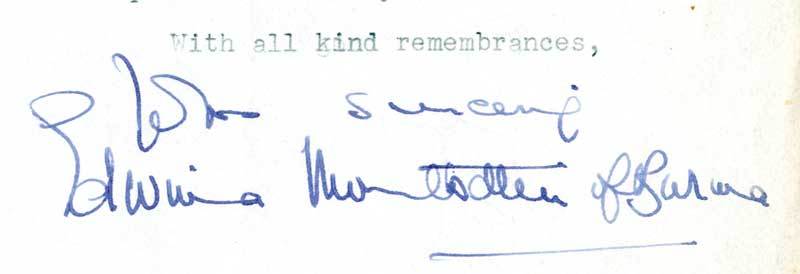 The Viscount Mountbatten of Burma (1947): 1956 and 1959 typed letters from the Prime Minister's House, New Delhi (printed letterhead) to Shri S.N. Swamy in Mysore, both letters indicating the impossibility of paying a visit to her, both signed "Edwina Mountbatten of Burma". (2). Photo