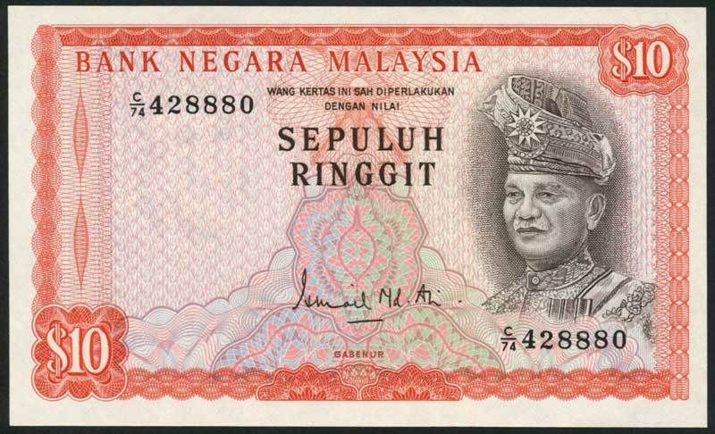 Bank Negara Malaysia, 10 ringgit, ND (1972), prefix C/74, red and multicoloured, Tuanku Abdul Rahman at right
