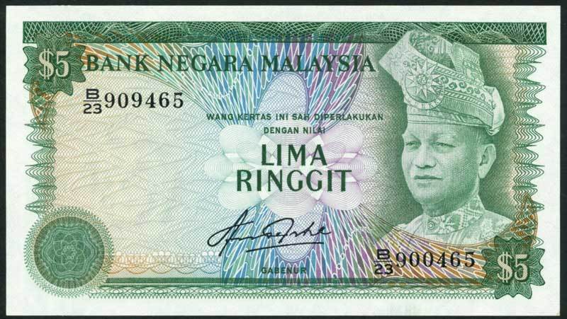 Bank Negara Malaysia, 1 ringgit, ND (1981-), prefix M/8, blue, 10 ringgit, prefix F/67 , red, 50 ringgit, prefix B/82, blue, all Tuanku Abdul Rahman at right, Abdul Aziz bin Taha signature