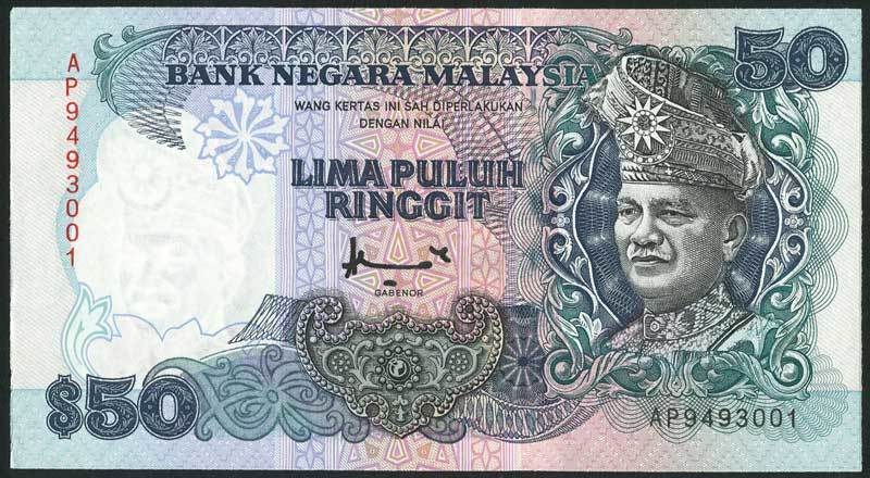 Bank Negara Malaysia, a set of the ND (1995-) series comprising 5,10,50,100 ringgit, all Tuanku Abdul Rahman at right and all signature of Ahmad bin Mohd.Don, also 5 ringgit replacement note with prefix NZ