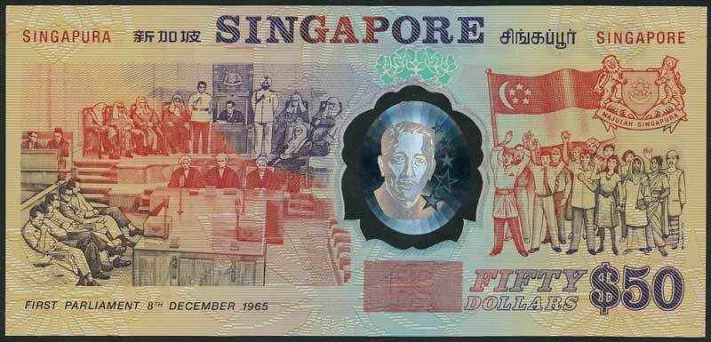 (Pick 30, Linzmayer BCCS B28a, Tan ECN1), uncirculated and the first polymer note issued in Singapore (7)