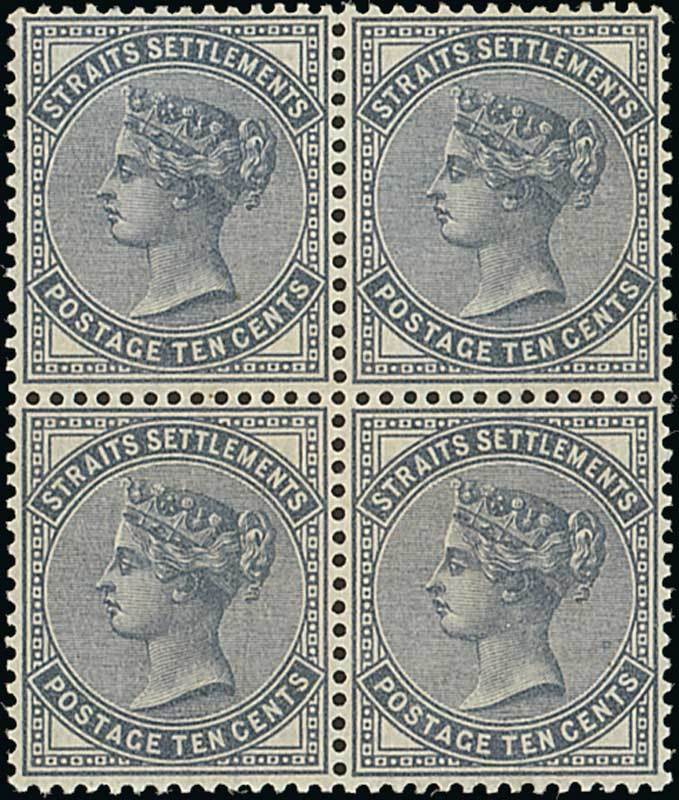 10c. slate block of four, fresh and fine unused with much original gum. A rare multiple. S.G. 49, £2000. Photo