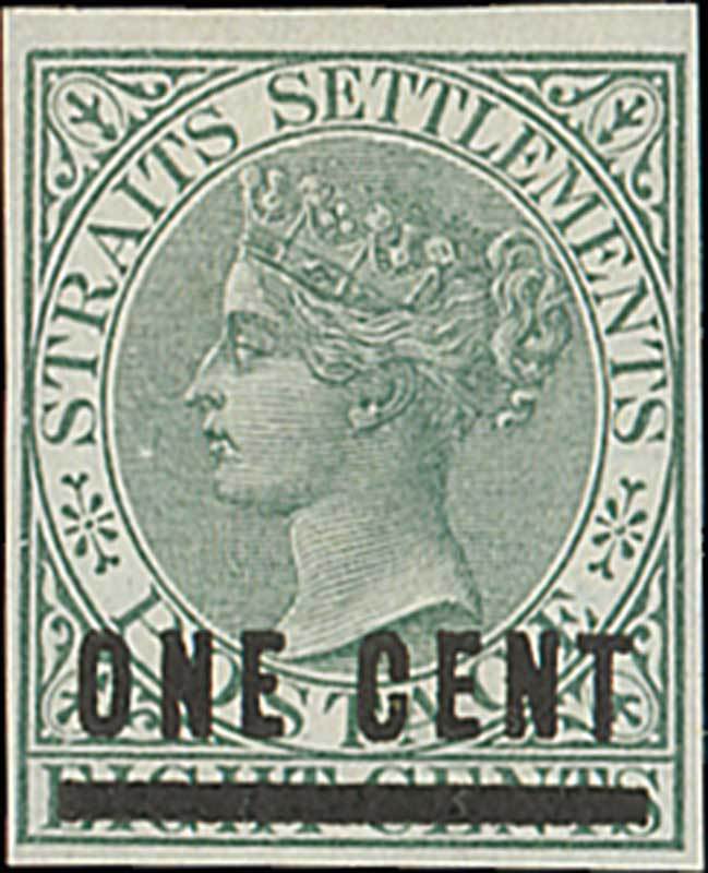 "one cent" on 8c. green imperforate on gummed watermarked paper, fine. Photo