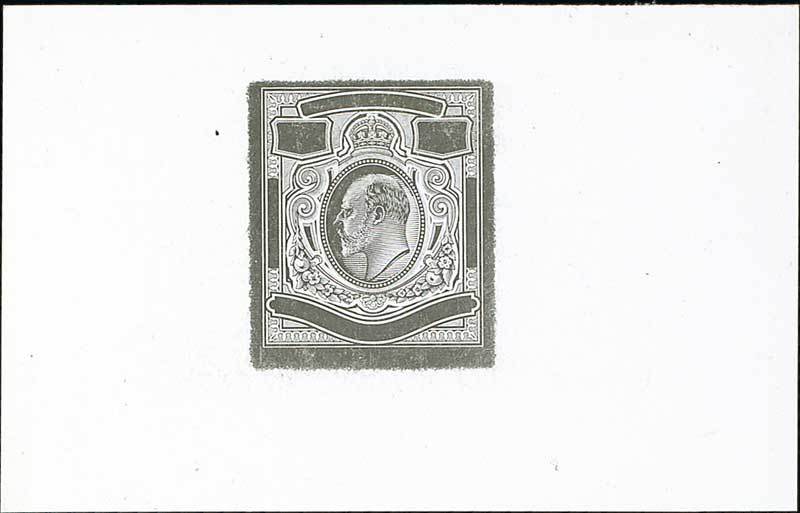 High value master die proof with uncleared country name, value tablets and surround in black on glazed card (92x58mm.), unmarked. Photo