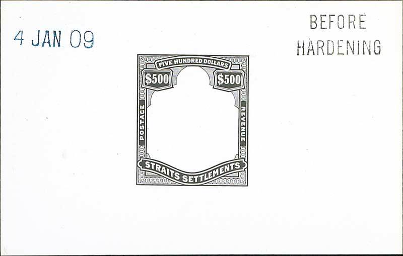 $500 frame only in black on glazed card (92x60mm.), marked "before hardening" and dated "4 jan 09", fine. Photo
