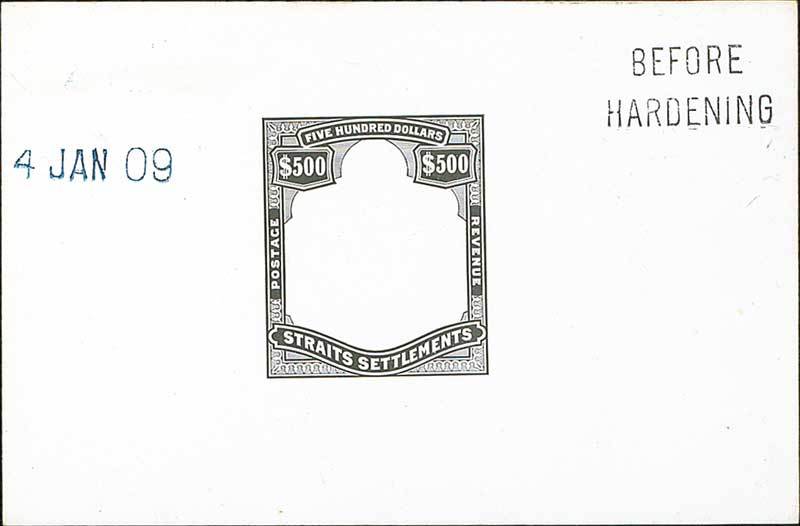 $500 frame only in black on glazed card (92x60mm.), marked "before hardening" and dated "4 jan 09", fine. Photo