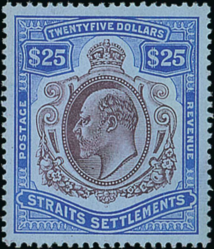 $25 purple and blue on blue, well-centred, fresh and fine mint. S.G. 168, £3500. Photo