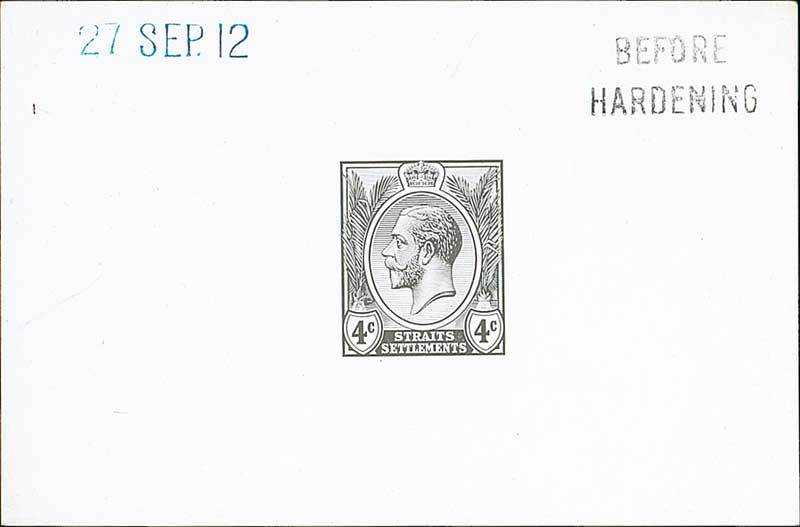 4c. in black on glazed card (92x60mm.), marked "before hardening" and dated "27 Sep. 12", fine. Photo