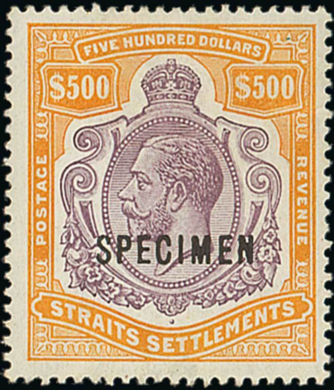 $500 purple and orange-brown overprinted "specimen", fine mint. S.G. 215s, £4500. Photo