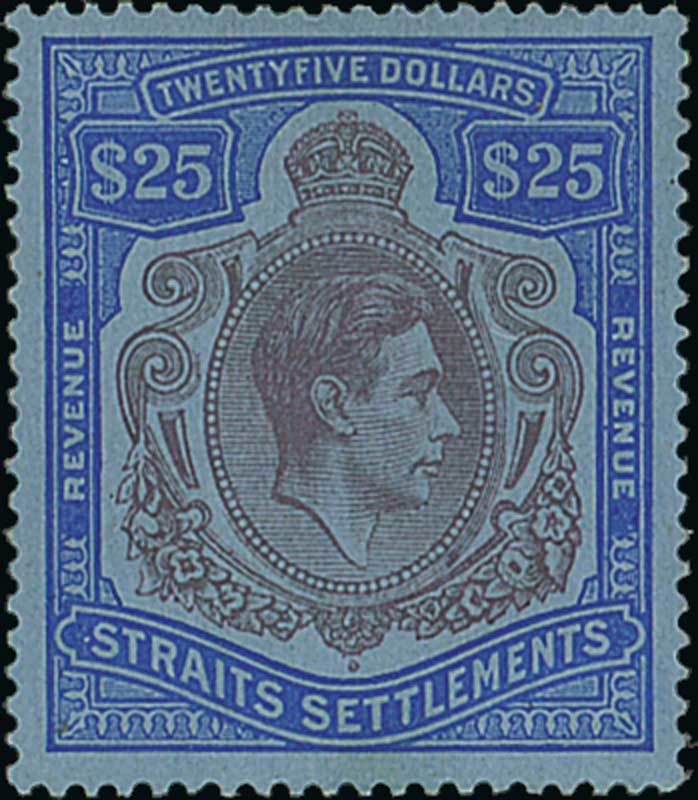 1938 $25 purple and blue on blue, fresh and fine mint. S.G. F1, £1200. Photo
