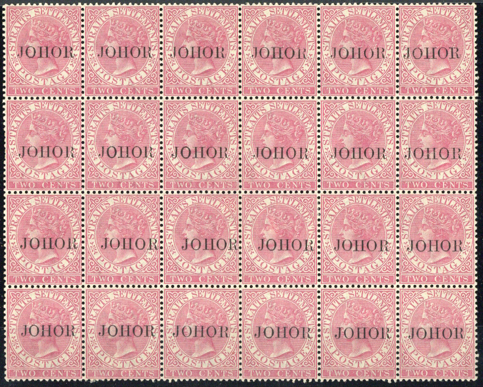 2c. pale rose block of twenty-four (6x4) from Setting II or III with one showing thin, narrow "J", unused with large part or full original gum, a few split perfs and one in the bottom row with small thin, otherwise fine and a most impressive multiple. S.G. 10/10a, £850+