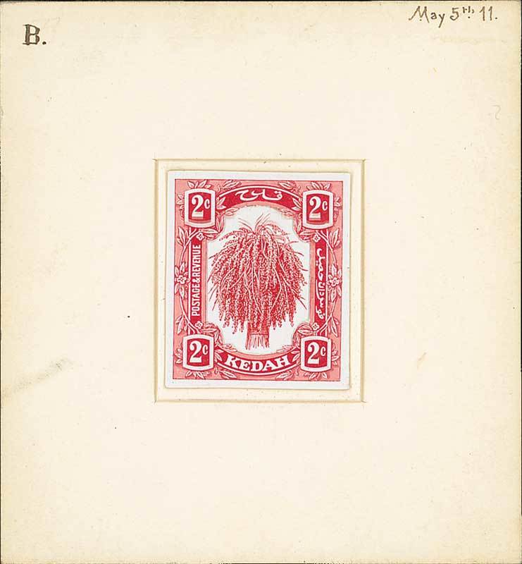 2c. composite photographic essay in red in a design similar to that issued but enlarged to 25x30mm., some handpainting to the frame, inset on thick card (78x84mm.) marked "B" and dated May 11th 11". Photo