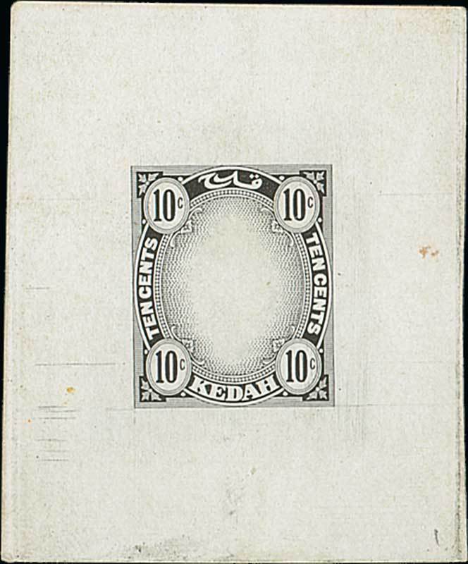 "Sheaf of rice" design, 10c. frame similar to that issued but with "ten cents" either side, in black on glazed card (42x51mm.), fine. Photo