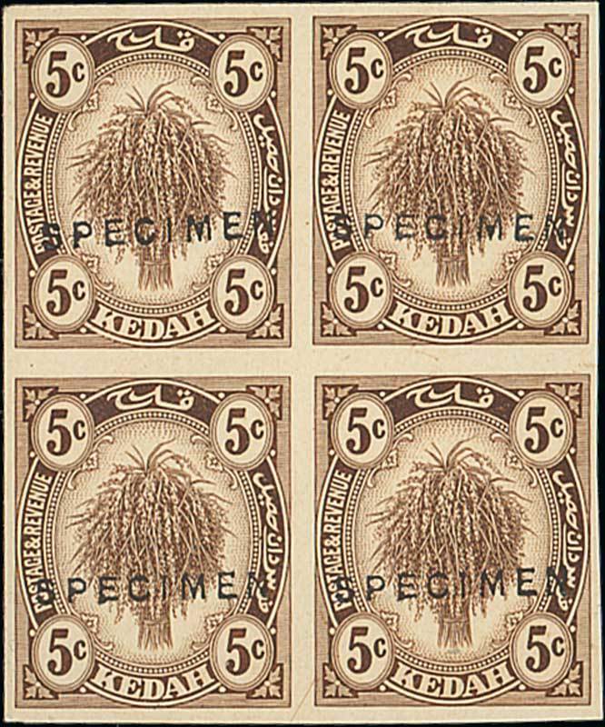 5c. sepia block of four, each overprinted "specimen" (Type DS1), fine. Photo