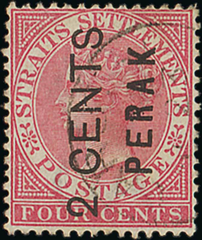 1883 "2 cents/perak" Vertical Surcharge Upwards