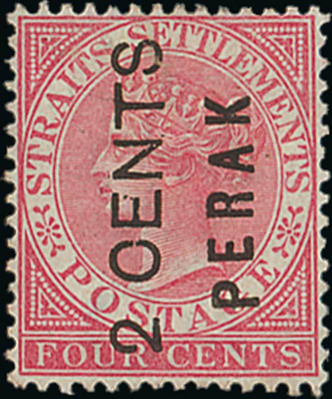 1883 "2 cents/perak" Vertical Surcharge Upwards
