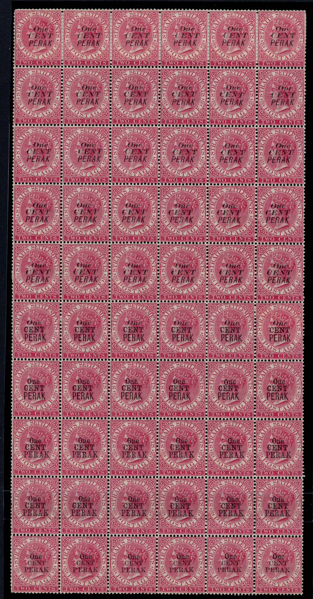 1c. on 2c. bright rose, a complete pane of sixty (6x10) from Setting 4 without margins showing the "preak" error corrected, comprising Types 30 (30), 32 (6), 33 (6), 34 (12) and 37 (6), unused with large part or full original gum. S.G. 33b, 35b-37b, 40b; £523